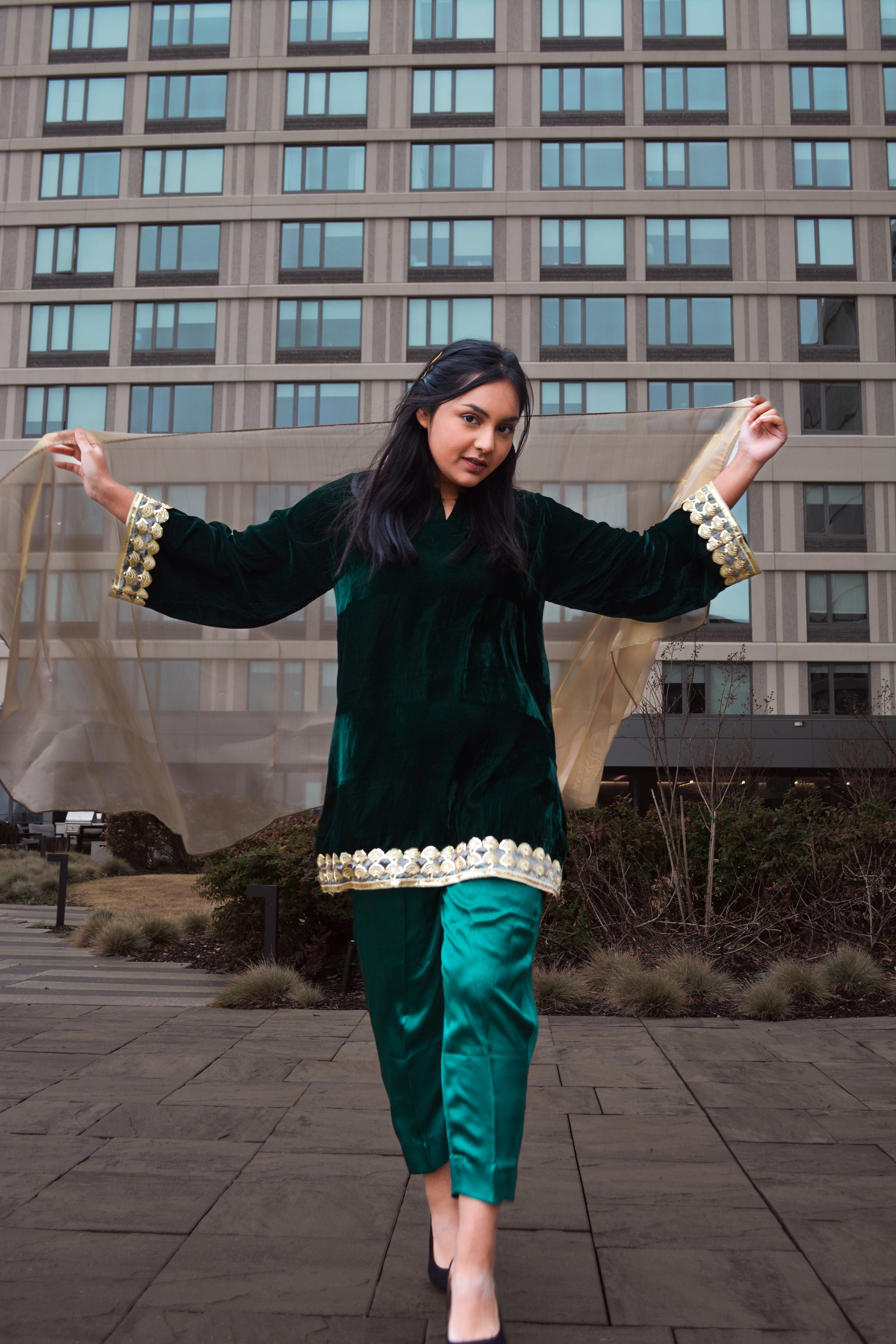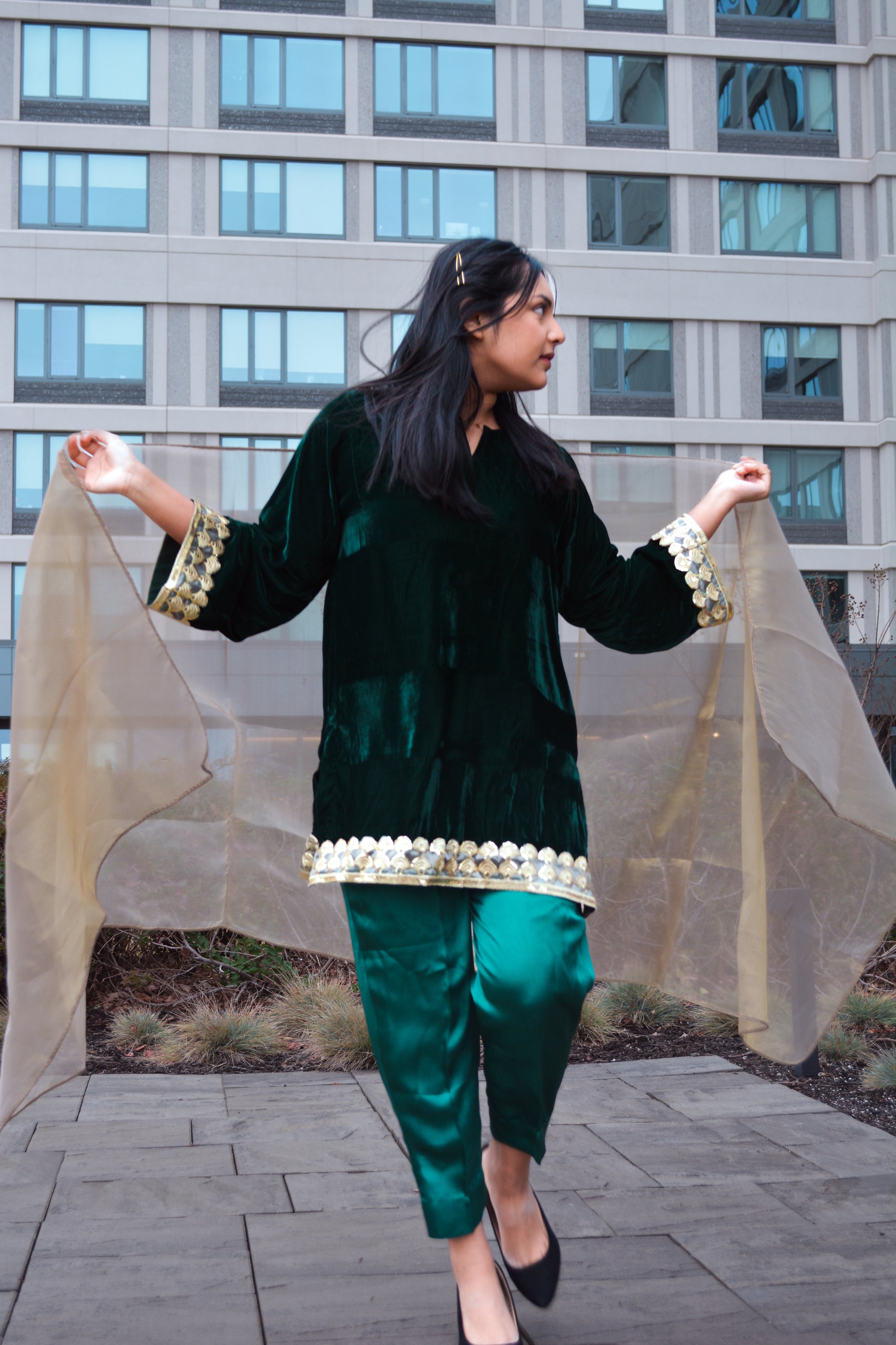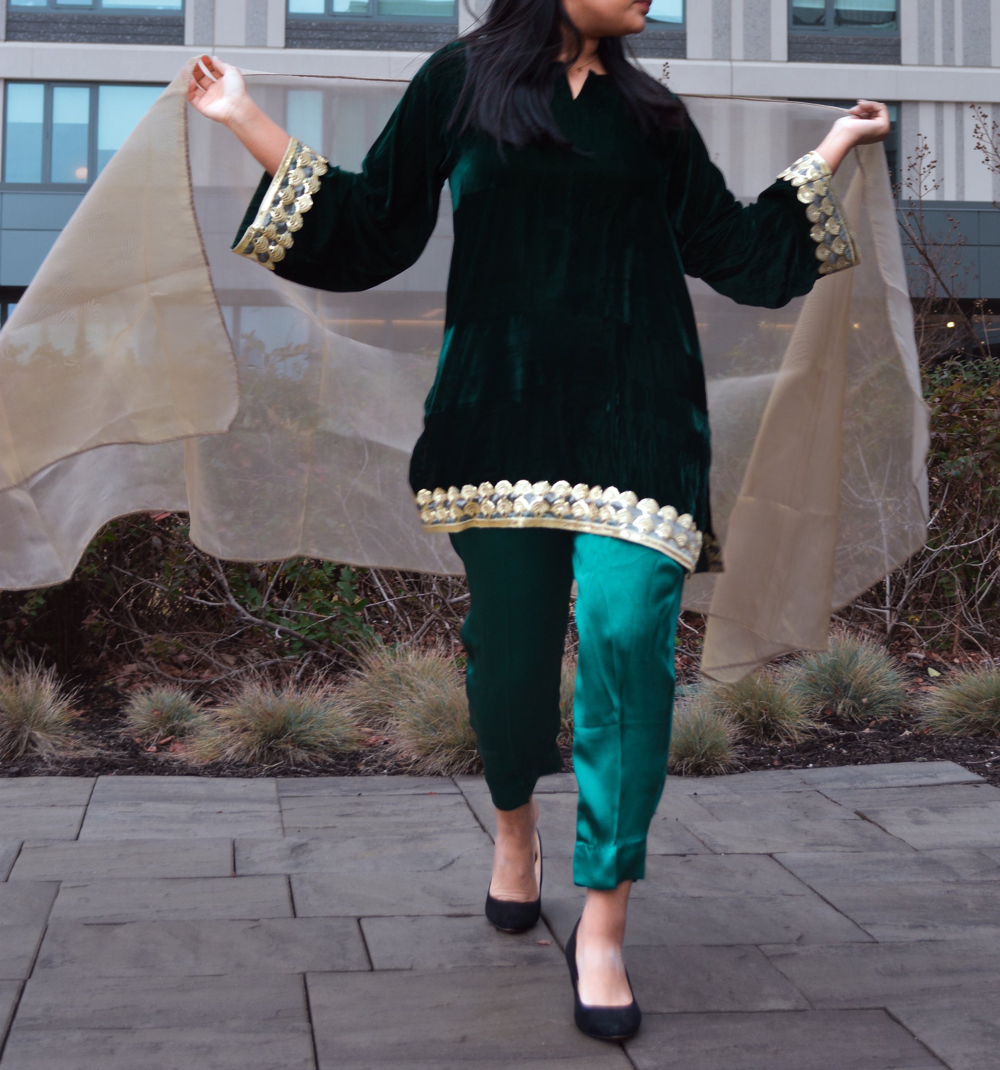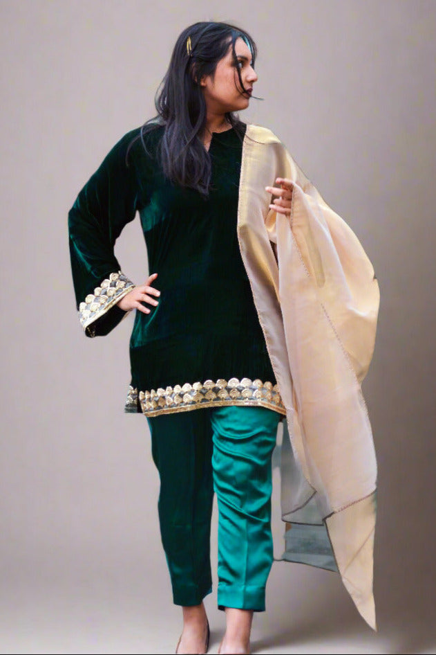 Dark green velvet kurti