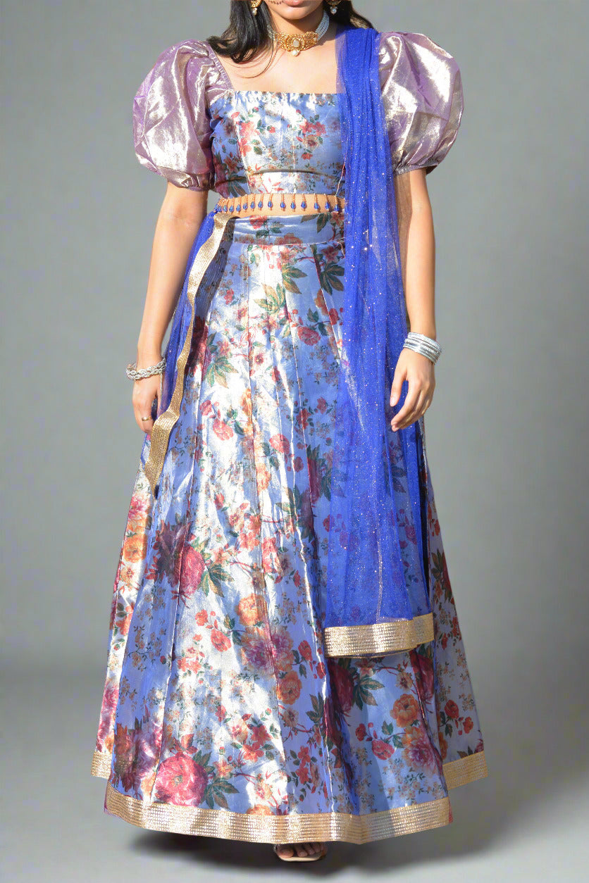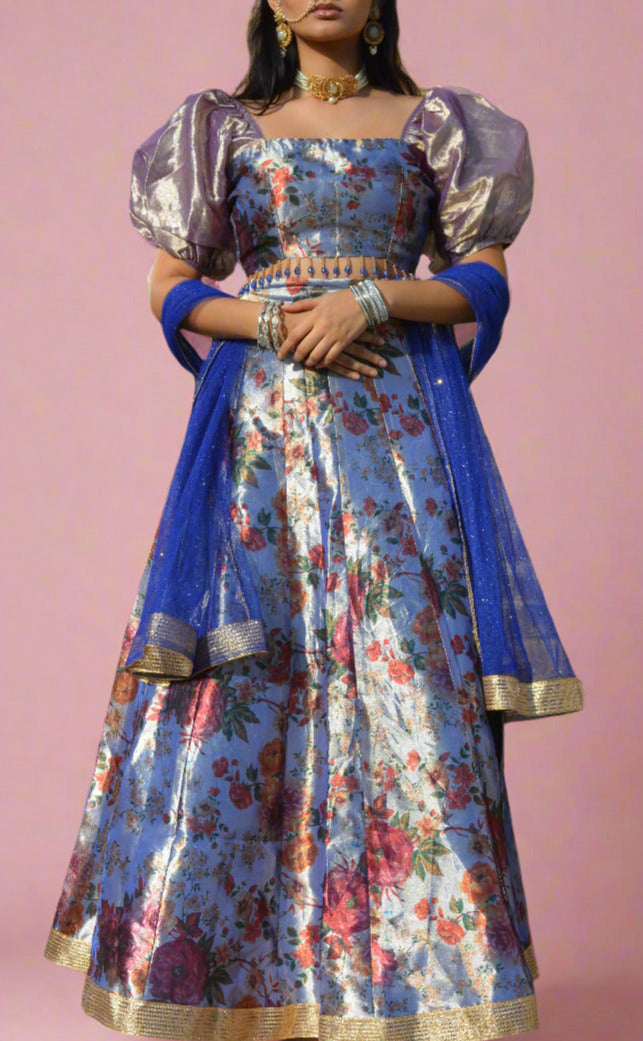 Floral brocade lehenga skirt with gold edging